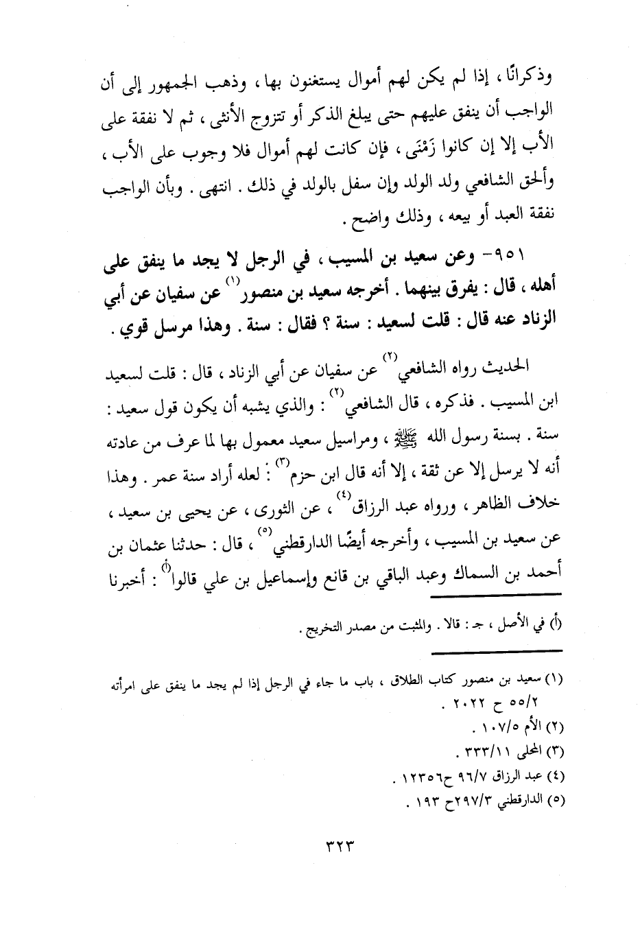 951 - وعن سعيد بن المسيب، في الرجل لا يجد ما ينفق على أهله، قال: يفرق بينهما. أخرجه سعيد بن منصور (¬1) عن سفيان عن أبي الزناد عنه قال: قلت لسعيد: سنة؟ فقال: سنة. وهذا مرسل قوي.
