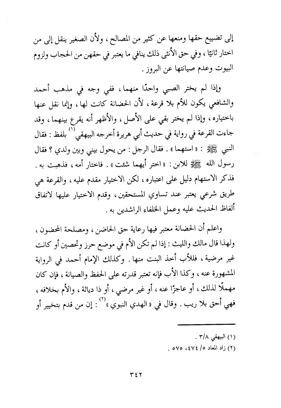 وإذا لم يختر الصبي واحدًا منهما، ففي وجه في مذهب أحمد والشافعي يكون للأم بلا قرعة، لأن الحضانة كانت لها، وإنما نقل عنها باختياره، وإذا لم يختر بقي على الأصل، والأظهر أنه يقرع بينهما، وقد جاءت القرعة في رواية في حديث أبي هريرة أخرجه البيهقي (¬1) بلفظ: فقال النبي - صلى الله عليه وسلم -: "استهما". فقال الرجل: من يحول بيني وبين ولدي؟ فقال رسول الله - صلى الله عليه وسلم - للابن: "اختر أيهما شئت". فاختار أمه فذهبت به. فذكر الاستهام دليل على اعتباره، لكن الاختيار مقدم عليه، والقرعة هي طريق شرعي يعتبر عند تساوي المستحقين، وقدم الاختيار عليها لاتفاق ألفاظ الحديث عليه وعمل الخلفاء الراشدين به.