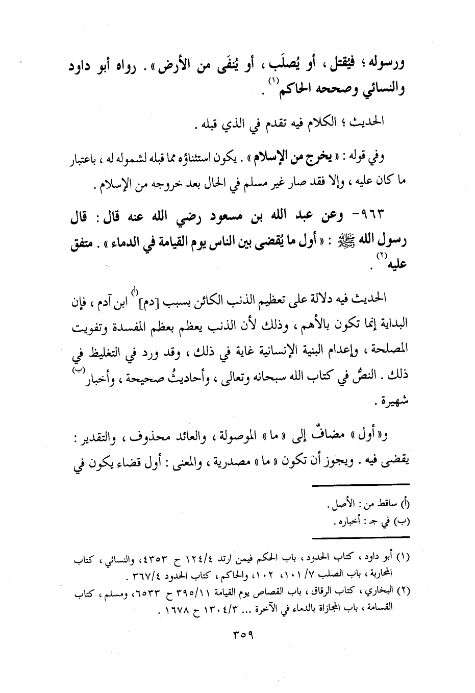 963 - وعن عبد الله بن مسعود رضي الله عنه قال: قال رسول الله - صلى الله عليه وسلم -: "أول ما يُقضى بين الناس يوم القيامة في الدماء". متفق عليه (¬2).