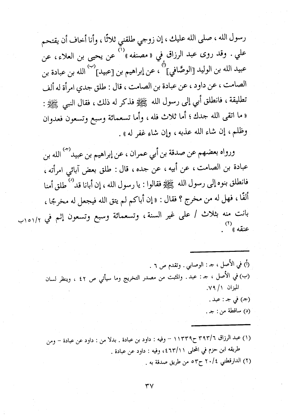 (¬1) عبد الرزاق 6/ 393 ح 11339 - وفيه: داود بن عبادة. بدلا من: داود عن عبادة- ومن طريقه ابن حزم في المحلى 11/ 463، وفيه: داود عن عبادة.