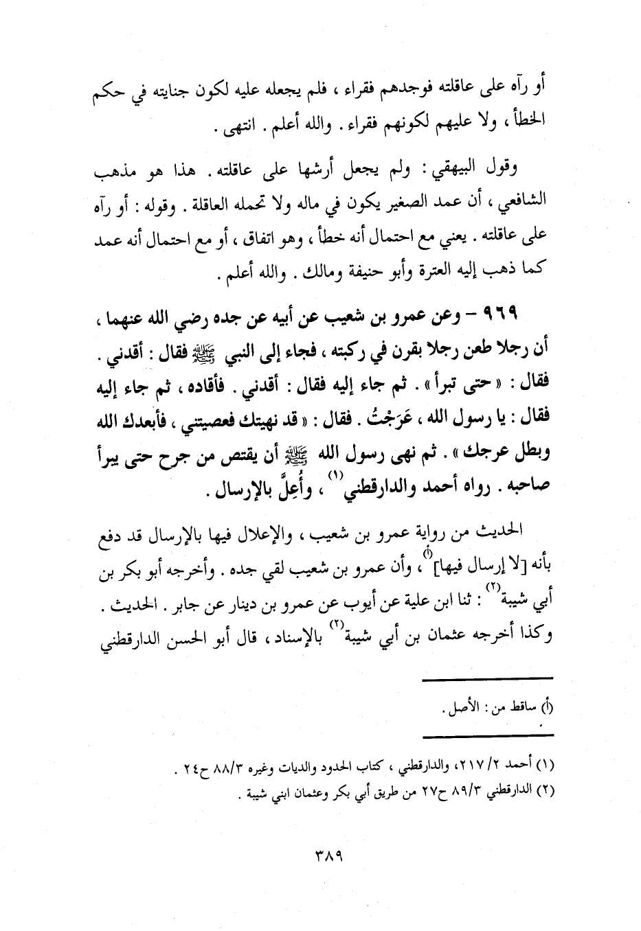 (¬1) أحمد 2/ 217، والدارقطني، كتاب الحدود والديات وغيره 3/ 88 ح 24.
