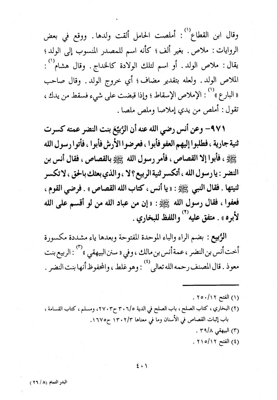 (¬2) البخاري، كتاب الصلح، باب الصلح في الدية 5/ 306 ح 2703، ومسلم، كتاب القسامة، باب إثبات القصاص في الأسنان وما في معناها 3/ 1302 ح 1675.
