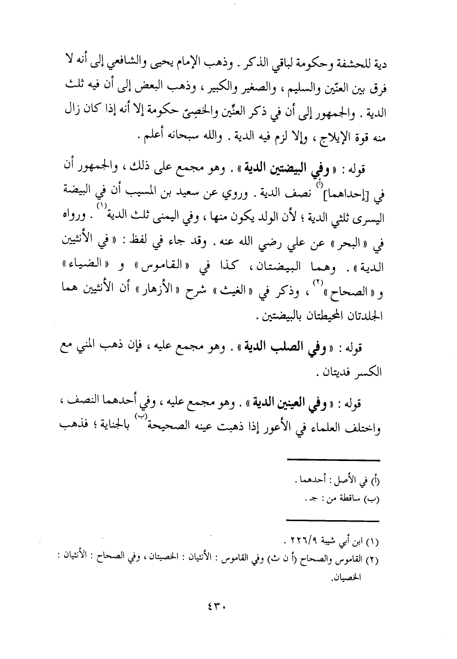 (¬2) القاموس والصحاح (أن ث) وفي القاموس: الأنثيان: الخصيتان، وفي الصحاح: الأنثيان: الخصيان.