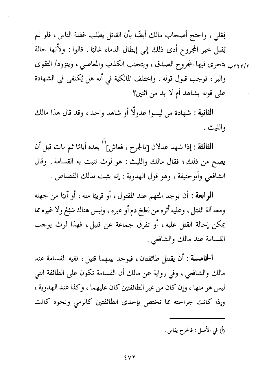 فِعْلي، واحتج أصحاب مالك أيضًا بأن القاتل يطلب غفلة الناس، فلو لم يُقبل خبر المجروح أدى ذلك إلى إبطال الدماء غالبًا. قالوا: ولأنها حالة يتحرى فيها المجروح الصدق، ويتجنب الكذب والمعاصي، ويتزود التقوى والبر، فوجب قبول قوله. واختلف المالكية في أنه هل يُكتفى في الشهادة على قوله بشاهد أم لا بد من اثنين؟