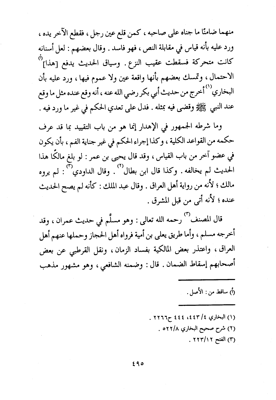 قال المصنف (3) رحمه الله تعالى: وهو مسلَّم في حديث عمران، وقد أخرجه مسلم، وأما طريق يعلى بن أمية فرواه أهل الحجاز وحملها عنهم أهل العراق، واعتذر بعض المالكية بفساد الزمان، ونقل القرطبي عن بعض أصحابهم إسقاط الضمان. قال: وضمنه الشافعي، وهو مشهور مذهب