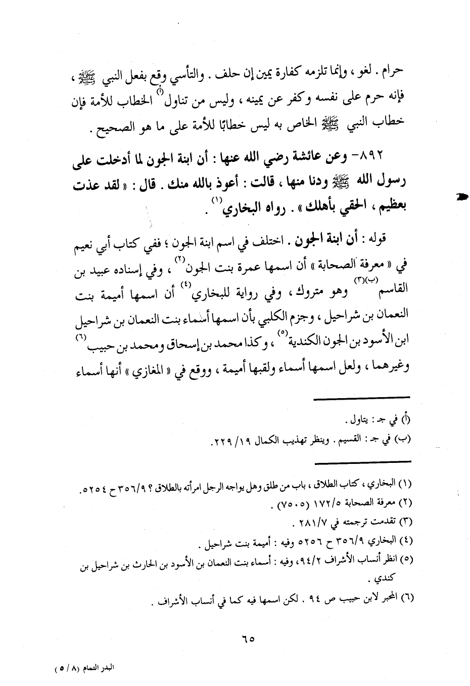 (¬4) البخاري 9/ 356 ح 5256 وفيه: أميمة بنت شراحيل.