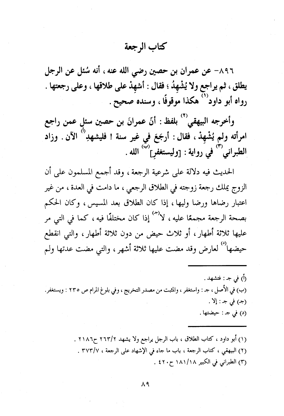 (¬2) البيهقي، كتاب الرجعة، باب ما جاء في الإشهاد على الرجعة، 7/ 373.