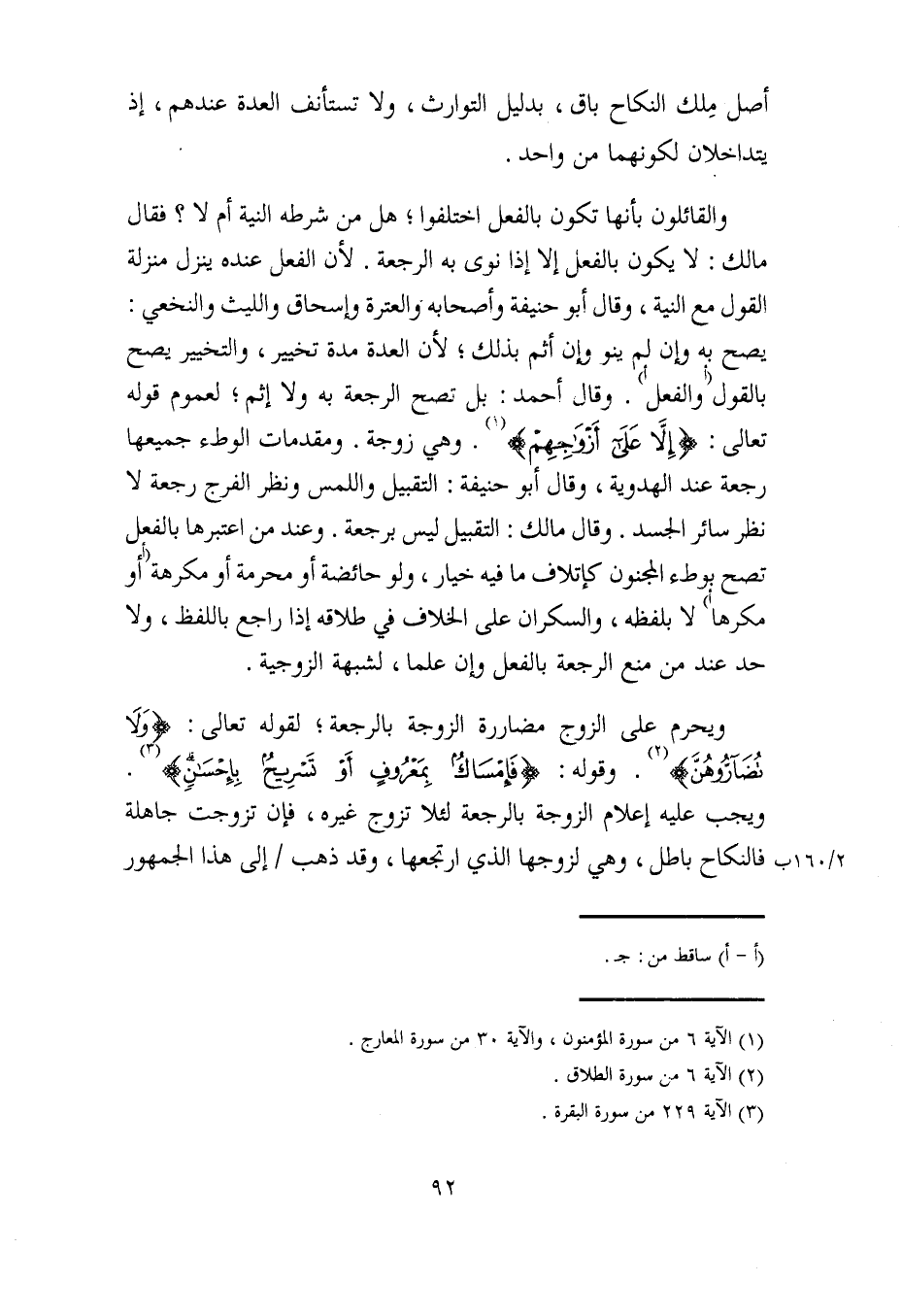 (¬1) الآية 6 من سورة المؤمنون، والآية 30 من سورة المعارج.