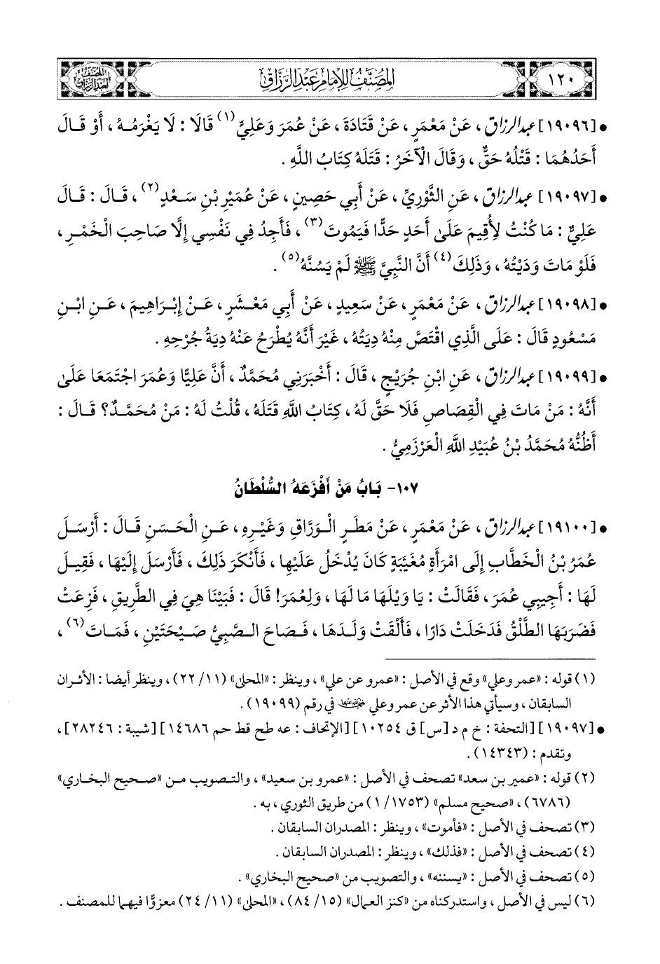 19099 - عبد الرزاق، عَنِ ابْنِ جُرَيْجٍ، قَالَ: أَخْبَرَنِي مُحَمَّدٌ، أَنَّ عَلِيًّا، وَعُمَرَ اجْتَمَعَا عَلَى أَنَّهُ مَنْ مَاتَ فِي الْقِصَاصِ فَلاَ حَقَّ لَهُ كِتَابُ اللهُ قَتَلَهُ.
