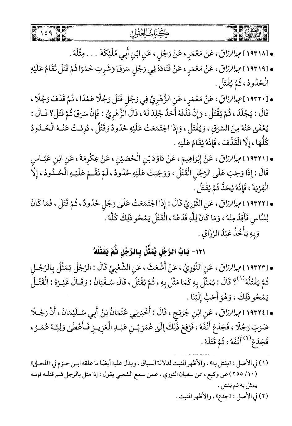 19319- عبد الرزاق، عَنْ مَعْمَرٍ، عَن قَتَادَةَ؛ فِي رَجُلٍ سَرَقَ وَشَرِبَ خَمْرًا، ثُمَّ قَتَلَ: تُقَامُ عَلَيْهِ الْحُدُودُ، ثُمَّ يُقْتَلُ.