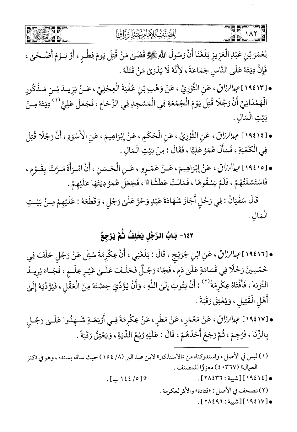 19414- عبد الرزاق، عَنِ الثَّورِيِّ، عَنِ الْحَكَمِ، عَن إِبرَاهِيمَ، عَنِ الأَسْوَدِ، أَنَّ رَجُلاً قُتِلَ فِي الْكَعْبَةِ، فَسَأَلَ عُمَرُ عَلِيًّا، فَقَالَ: مِنْ بَيْتِ المَالِ.