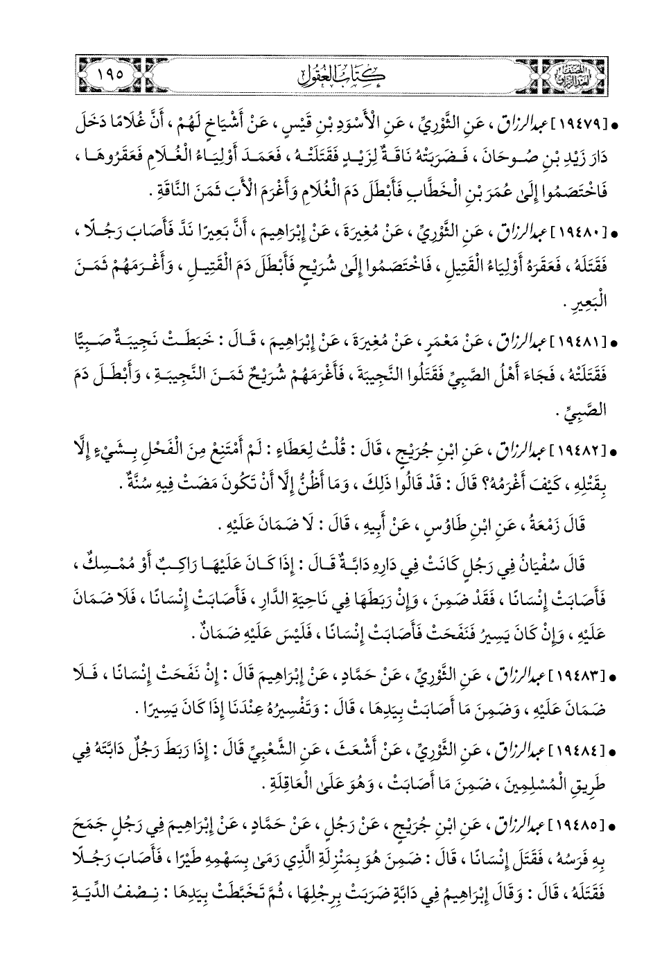 19484- عبد الرزاق، عَنِ الثَّورِيِّ، عَنْ أَشْعَثَ، عَنِ الشَّعْبِيِّ، قَالَ: إِذَا رَبَطَ رَجُلٌ دَابَّتَهُ فِي طَرِيقِ المُسْلِمِينَ، ضَمِنَ مَا أَصَابَتْ، وَهُوَ عَلَى الْعَاقِلَةِ.