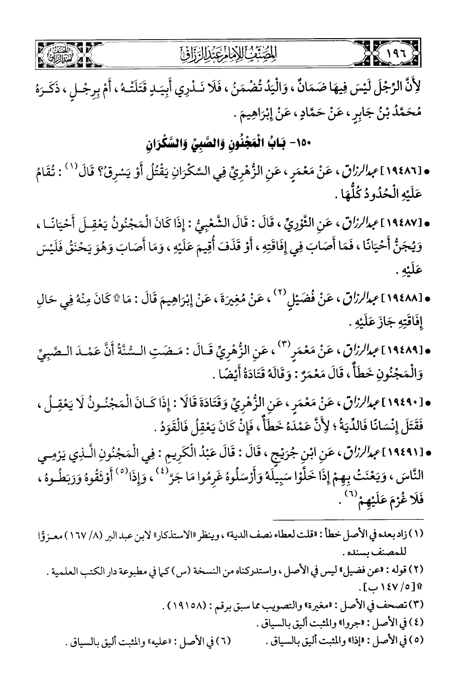 19487- عبد الرزاق، عَنِ الثَّورِيِّ، قَالَ: قَالَ الشَّعْبِيُّ: إِذَا كَانَ المَجْنُونُ يَعْقِلُ أَحْيَانًا، ويُجَنُّ أَحْيَانًا، فَمَا أَصَابَ فِي إِفَاقَتِهِ، أَوْ قَذَفَ أُقِيمَ عَلَيْهِ، وَمَا أَصَابَ وَهُوَ يَحْنَقُ فَلَيْسَ عَلَيْهِ.