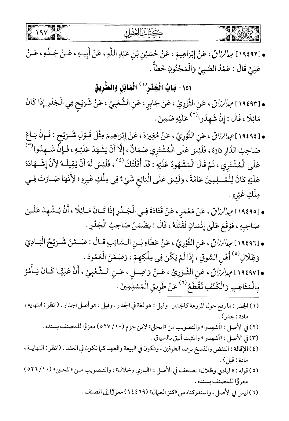 19497- عبد الرزاق، عَنِ الثَّورِيِّ، عَن وَاصِلٍ، عَنِ الشَّعْبِيِّ، أَنَّ عَلِيًّا كَانَ يَأْمُرُ بالمَثَاعِبِ والكُنُفِ تُقْطَعُ عَن طَرِيقِ المُسْلِمِينَ.