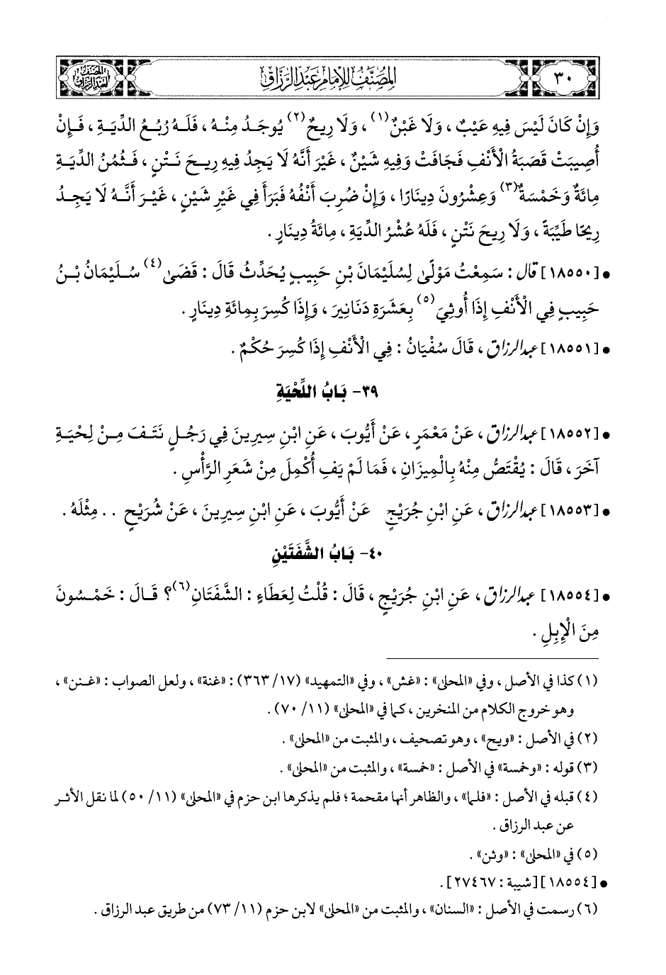 18552- عبد الرزاق، عَنْ مَعْمَرٍ، عَنْ أَيُّوبَ، عَنِ ابْنِ سِيرِينَ؛ فِي رَجُلٍ نَتَفَ مِنْ لِحْيَةِ آخَرَ، قَالَ: يُقْتَصُّ مِنْهُ بِالمِيزَانِ، فَمَا لَمْ يَفِ أُكْمِلَ مِنْ شَعْرِ الرَّأْسِ.