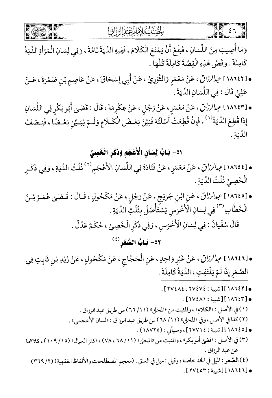 18642- عبد الرزاق، عَنْ مَعْمَرٍ، وَالثَّورِيِّ، عَنْ أَبِي إِسْحَاقَ، عَنْ عَاصِمِ بْنِ ضَمْرَةَ، عَنْ عَلِيٍّ، قَالَ: فِي اللِّسَانِ الدِّيَةُ.