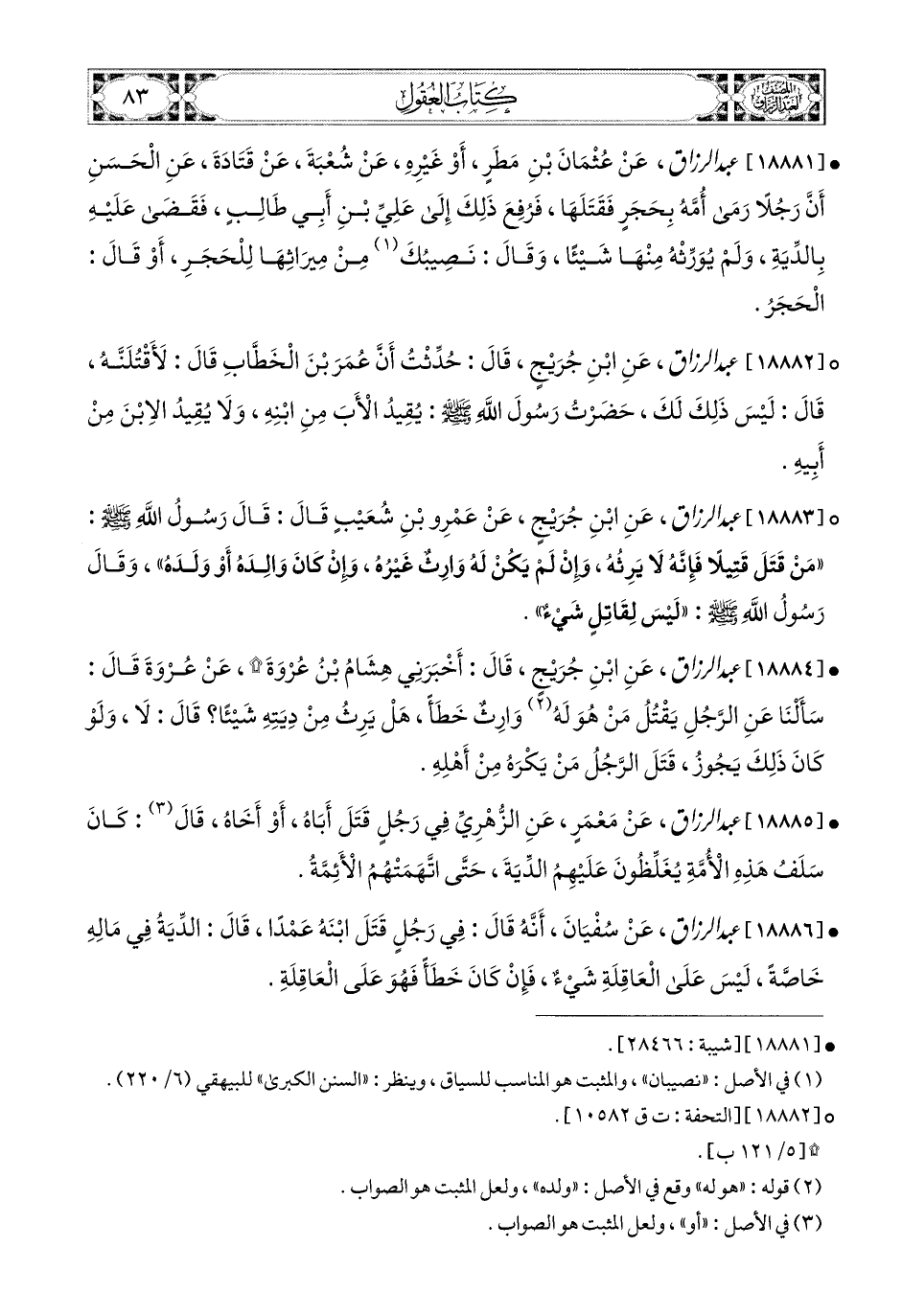 18885- عبد الرزاق، عَنْ مَعْمَرٍ، عَنِ الزُّهْرِيِّ؛ فِي رَجُلٍ قَتَلَ أَبَاهُ، أَوْ أَخَاهُ، قَالَ: كَانَ سَلَفُ هَذِهِ الأُمَّةِ يُغَلِّظُونَ عَلَيْهِمُ الدِّيَةَ [حَتَّى] (1) أَتْهَمَتْهَمُ الأَئِمَّةُ.