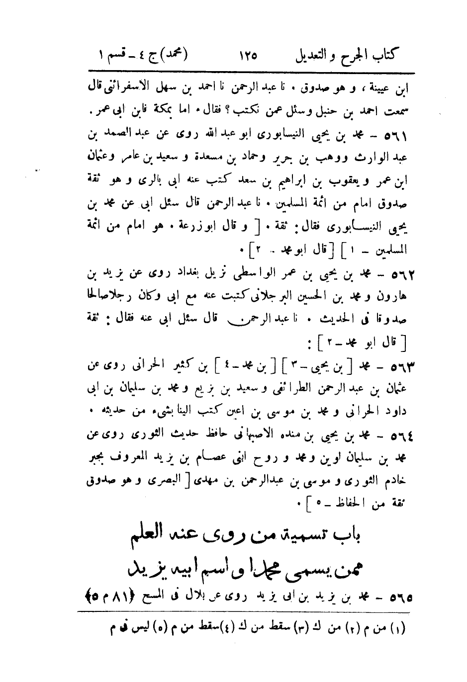 - باب تسمية من رُوي عنه العلم، مِمَّن يُسَمَّى مُحَمدًا، واسم أَبيه يزيد.