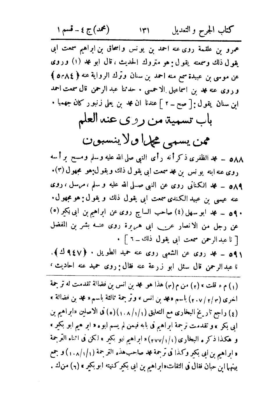 - باب تسمية من رُوي عنه العلم، مِمَّن يُسَمَّى مُحَمدًا، ولا ينسبون.