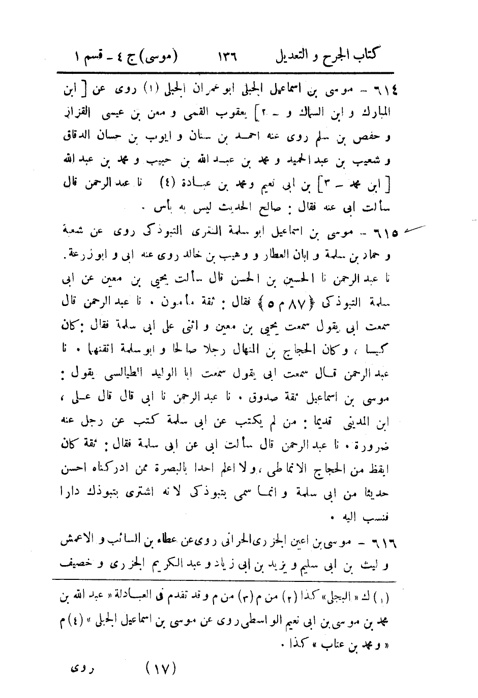614- موسى بن إِسماعيل الجبلي أَبو عِمران الجبلي.