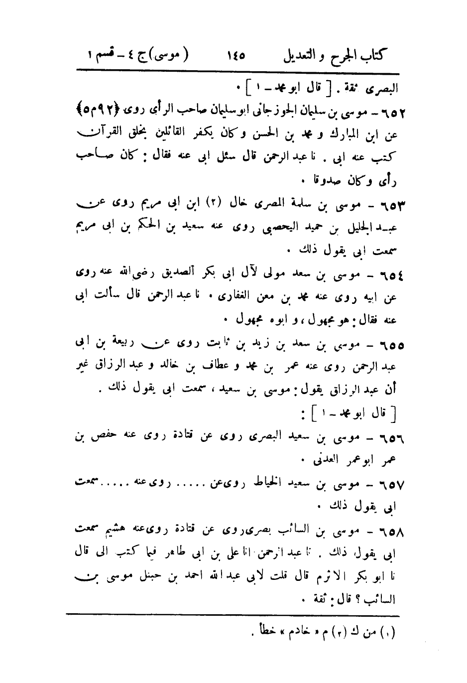 652- موسى بن سليمان الجُوزْجَاني أَبو سليمان، صاحب الرأي.