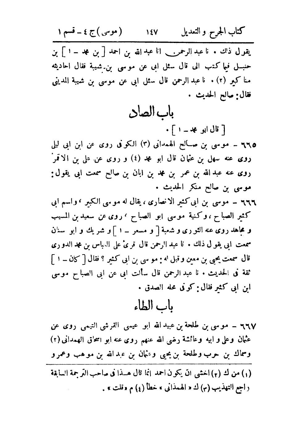 666- موسى بن أَبي كثير الأَنصاري، يقال له موسى الكبير، واسم أبي كثير الصباح، وكنية موسى: أَبو الصباح.