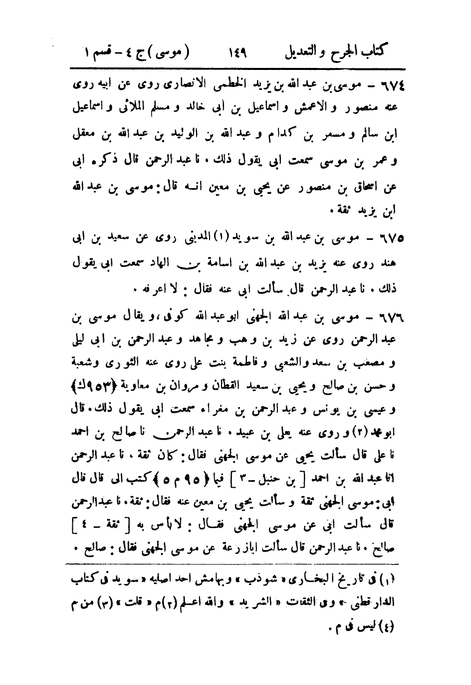 676- موسى بن عَبد الله الجُهني أَبو عَبد الله، كُوفيٌّ، ويُقال: موسى بن عَبد الرَّحمن.