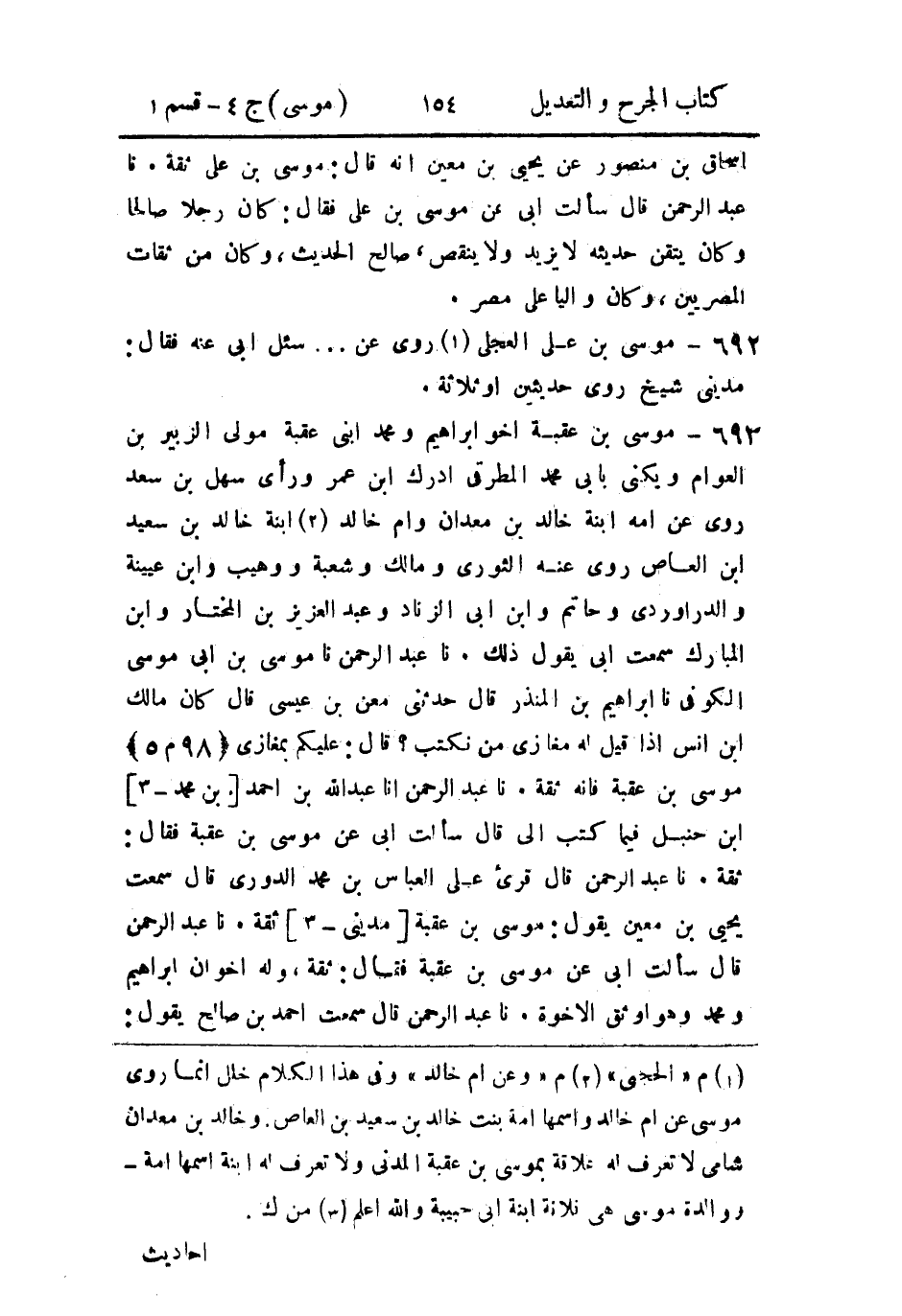 693- موسى بن عقبة، أَخو إِبراهيم، ومُحمد ابني عقبة، مولى الزبير بن العوام، ويكنى بأبي محمد المطرقي.