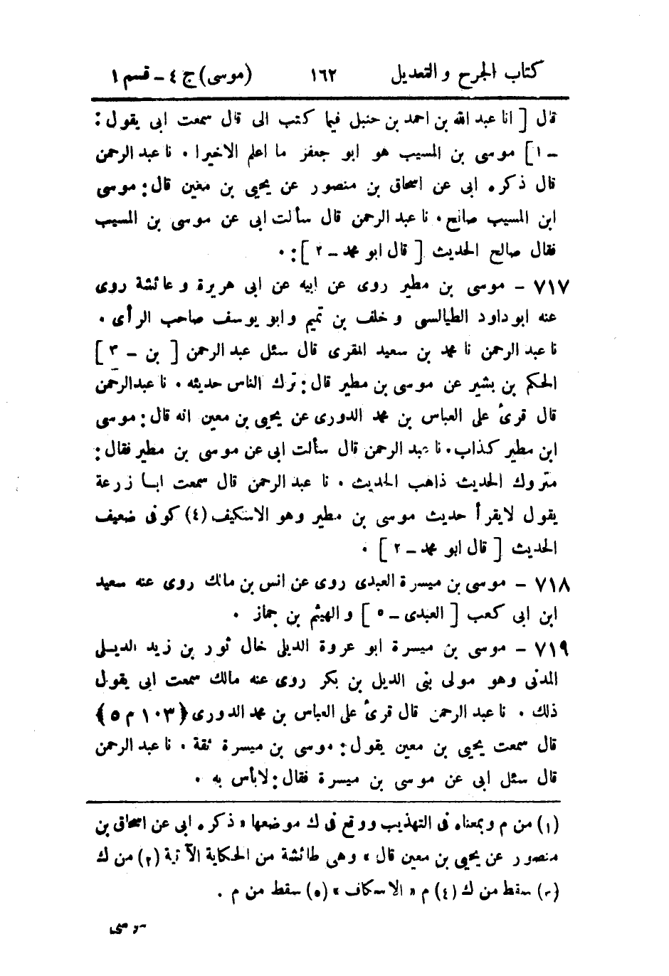 حَدثنا عَبد الرَّحمن، قال: قُرِئَ عَلَى العباس بن محمد الدُّوري، قال: سَمِعتُ يَحيَى بن مَعين يقول: موسى بن ميسرة ثقة.