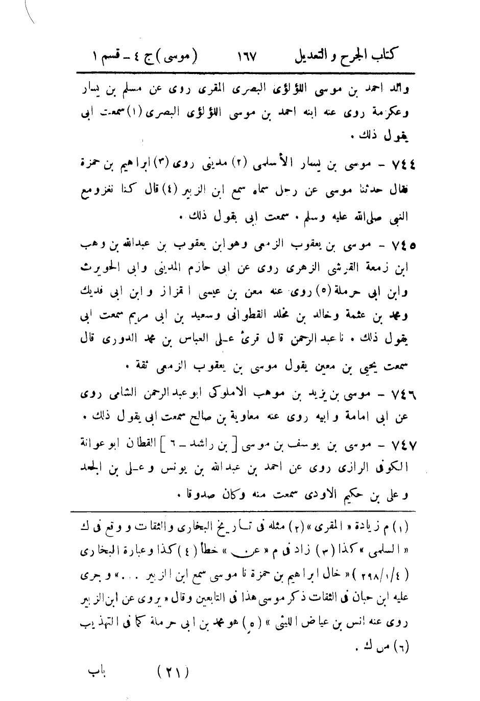 743- موسى بن يسار، وهو موسى بن أَبي مريم الخُزاعي صاحب اللؤلؤ، والد أَحمد بن موسى اللؤلؤي البَصري المُقرِئ.