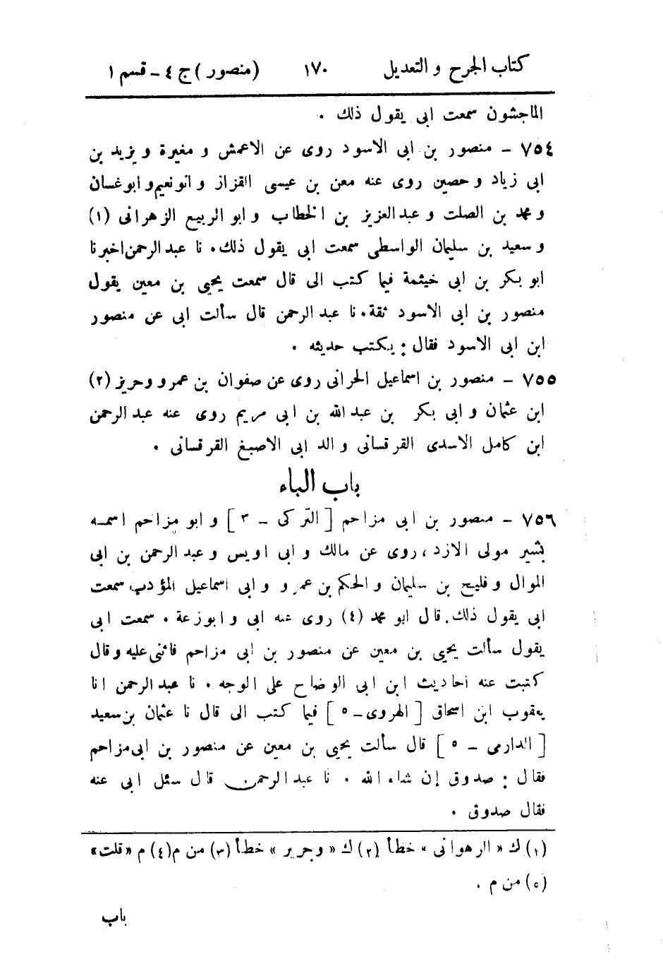 756- منصور بن أَبي مزاحم التركي، وأَبو مزاحم اسمه بشير مولى الأزد.