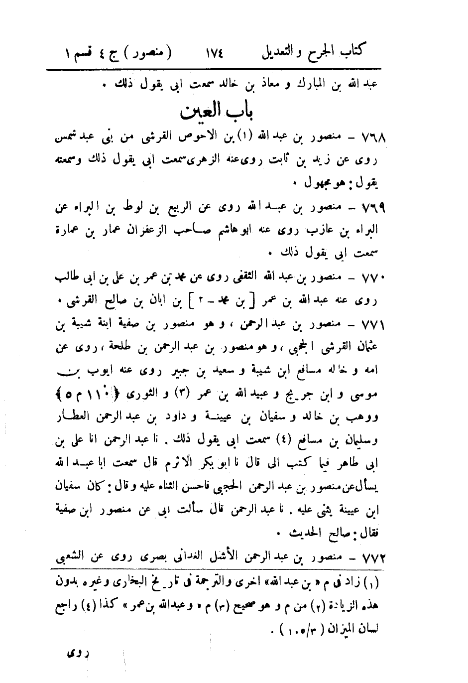 771- منصور بن عَبد الرَّحمن، وهو منصور بن صفية ابنة شيبة بن عثمان القُرَشي، الحجبي، وهو منصور بن عَبد الرَّحمن بن طلحة.