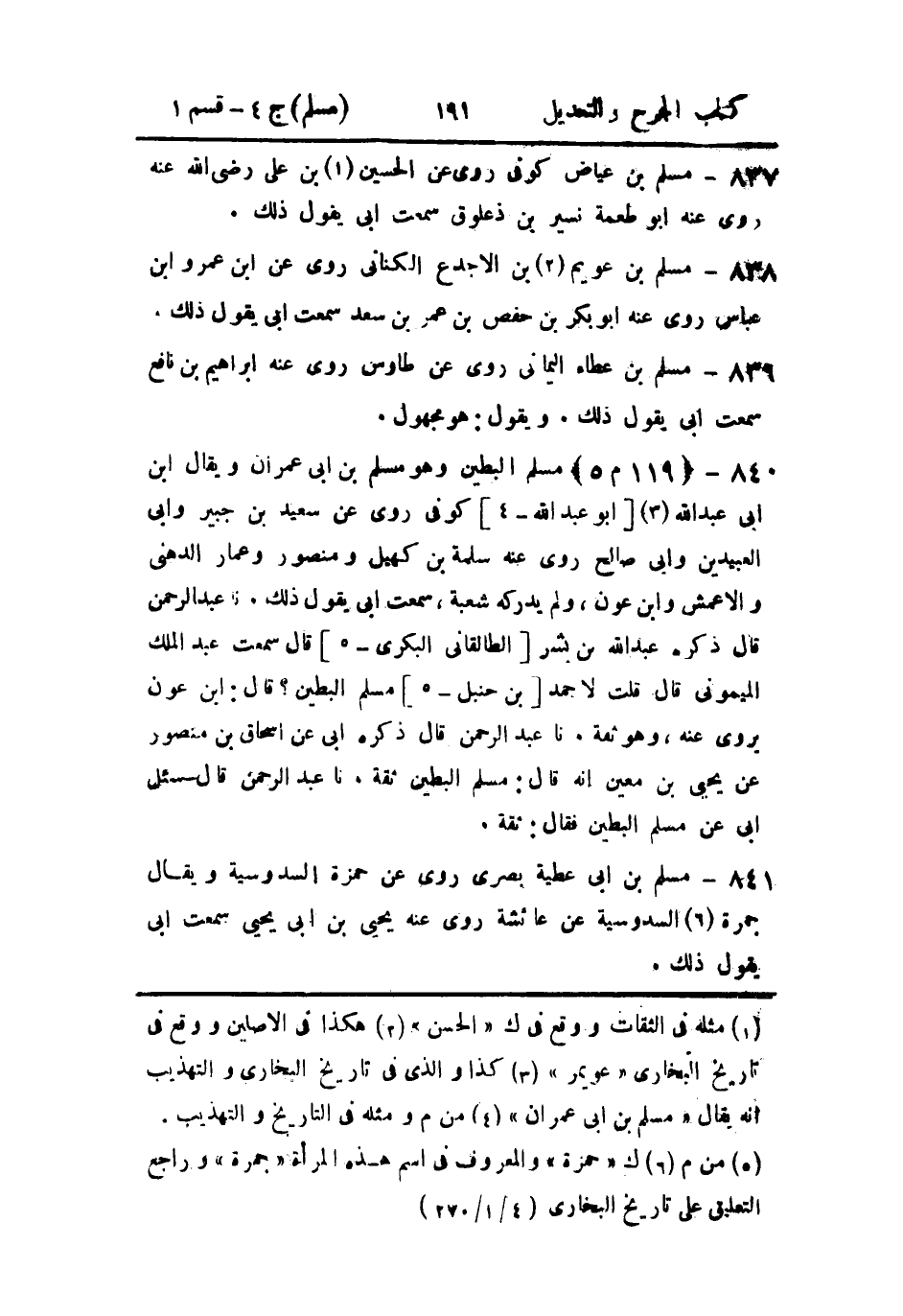 840- مسلم البطين، وهو مسلم بن أَبي عِمران، ويُقال: ابن أَبي عَبد الله أَبو عَبد الله، كُوفيٌّ.