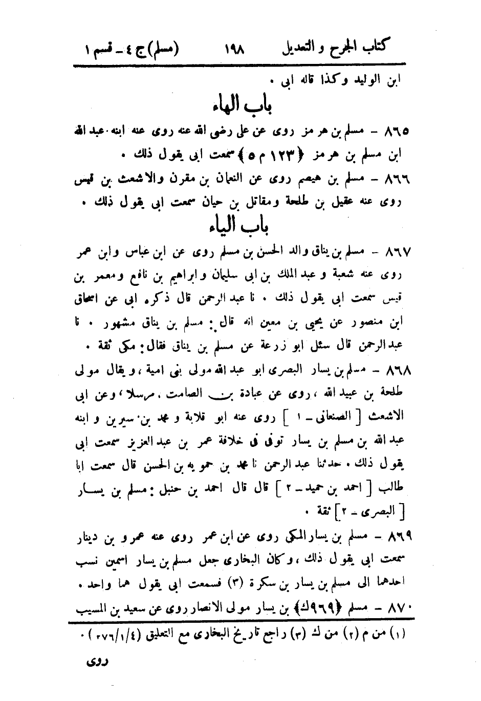 868- مسلم بن يسار البَصري أَبو عَبد الله، مَولى بَني أُمية، ويُقال: مولى طلحة بن عُبَيد الله.