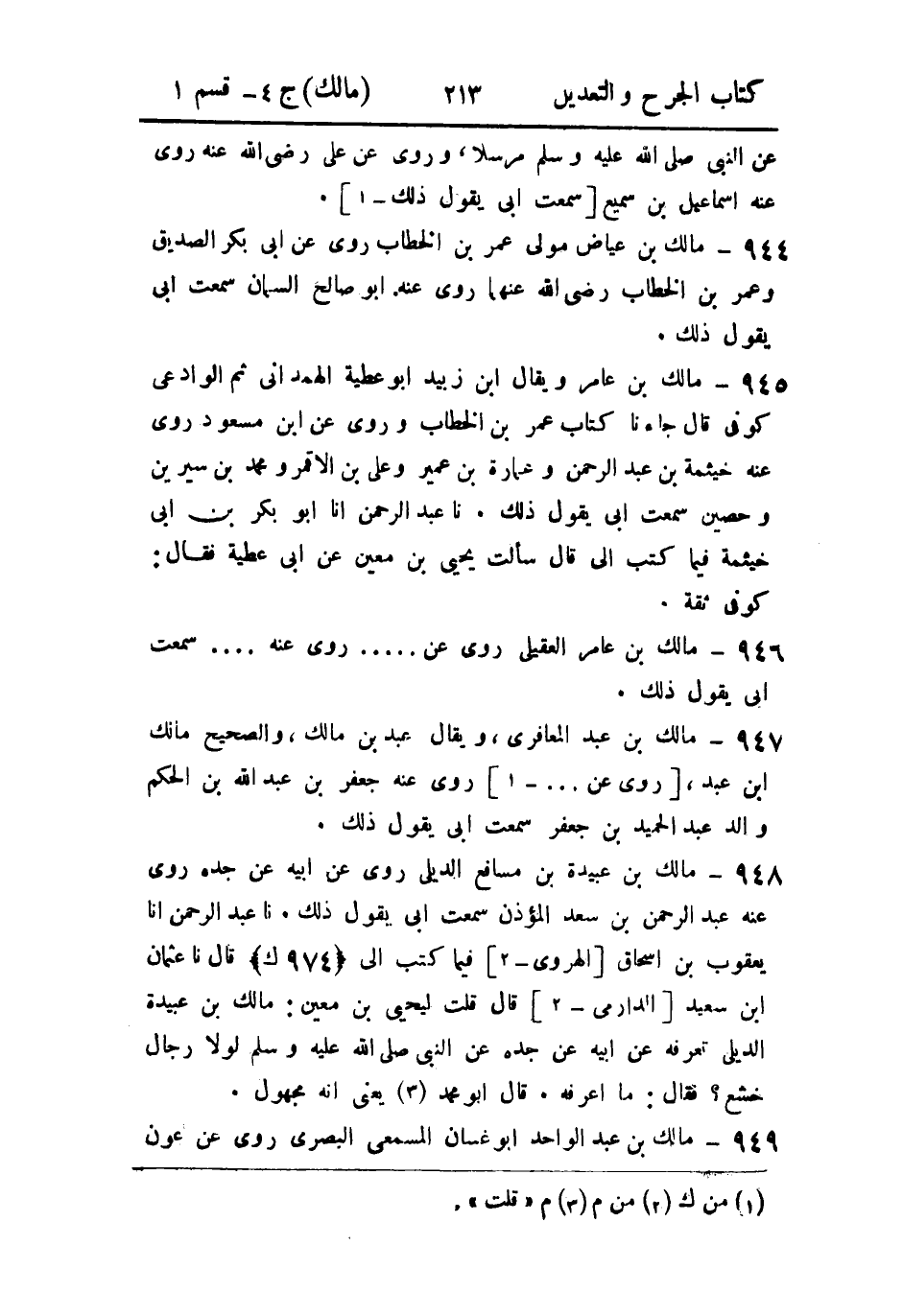 947- مالك بن عَبد المَعَافري، ويُقال: عَبد بن مالك، والصحيح مالك بن عبد.