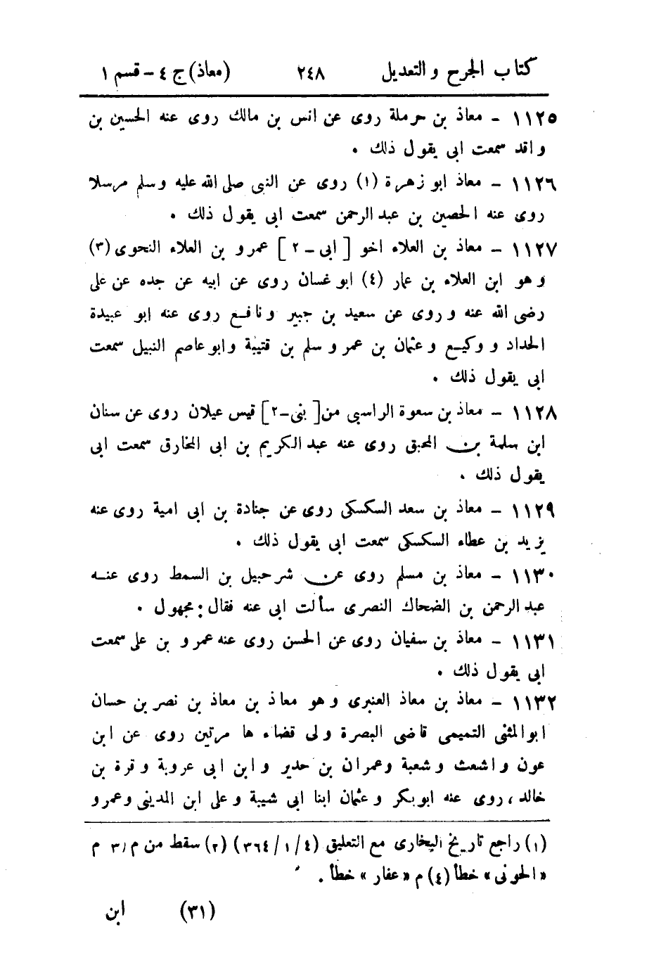 1127- معاذ بن العلاء، أَخو أبي عَمرو بن العلاء النحوي، وهو ابن العلاء بن عمار أَبو غسان.