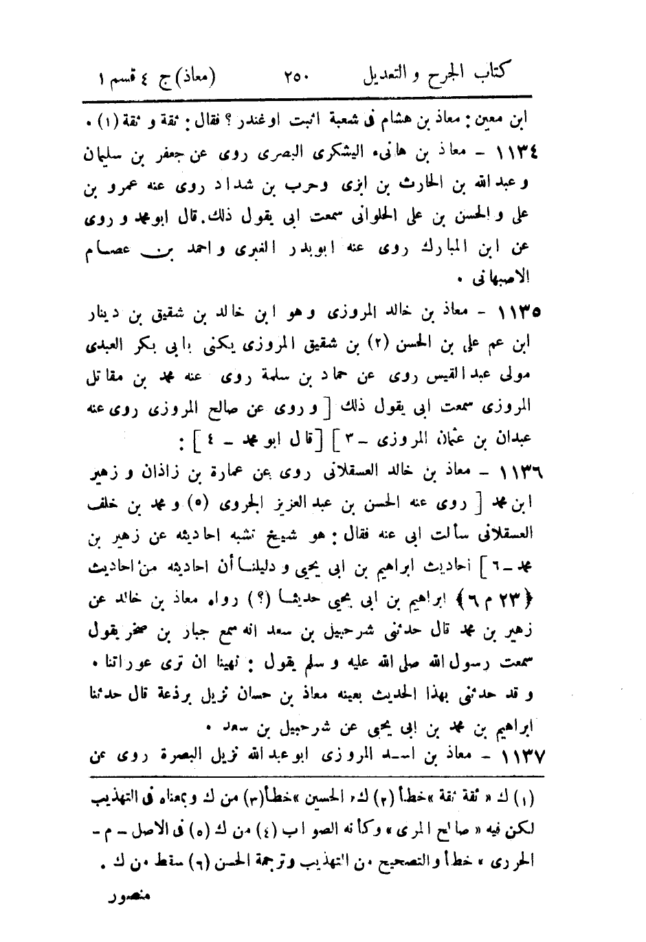 1135- معاذ بن خالد المَرْوَزي، وهو ابن خالد بن شقيق بن دينار، ابن عم عَلي بن الحسن بن شقيق المَرْوَزي، يكنى: بأبي بكر العَبدي مولى عَبد القيس.