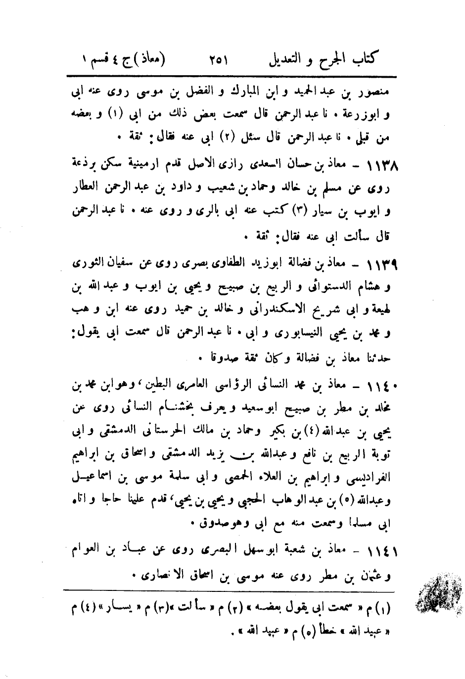 1140- معاذ بن محمد النَّسائي الرؤاسي، العامري البطين، وهو ابن محمد بن مَخْلَد بن مطر بن صبيح أَبو سَعيد ويُعرف بخشنام النَّسائي.