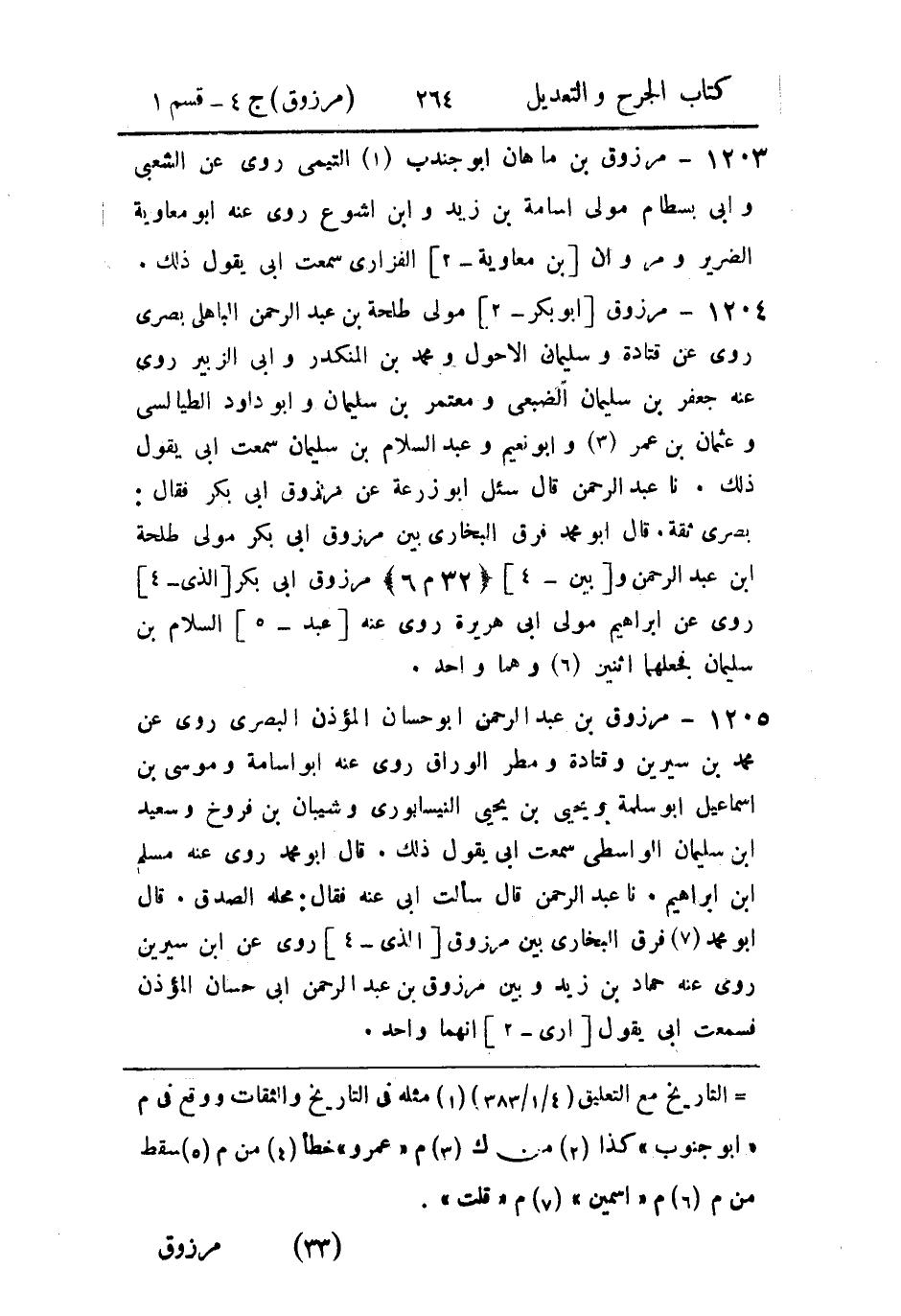 1204- مرزوق أَبو بكر مولى طلحة بن عَبد الرَّحمن الباهلي، بَصريٌّ.