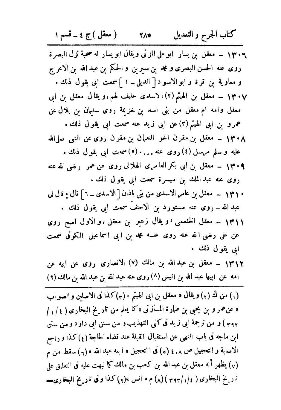1307- معقل بن الهيثم الأَسدي حليف لهم، ويُقال: معقل بن أَبي معقل، وأُمه أُم معقل مِن بَني أسد بن خزيمة.