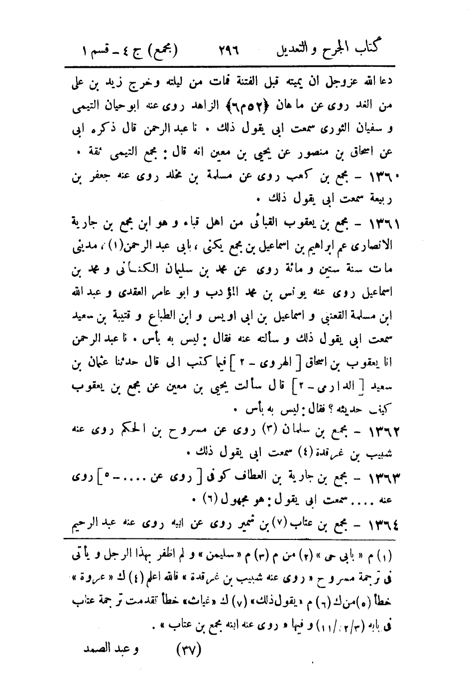 حَدثنا عَبد الرَّحمن، أَخبَرنا يعقوب بن إِسحاق الهروي، فيما كَتَبَ إلَيَّ، قال: حَدثنا عثمان بن سَعيد الدارمي، قال: سأَلتُ يَحيَى بن مَعين، عن مُجَمِّع بن يعقوب، كيف حديثه؟ فقال: ليس به بأسٌ.