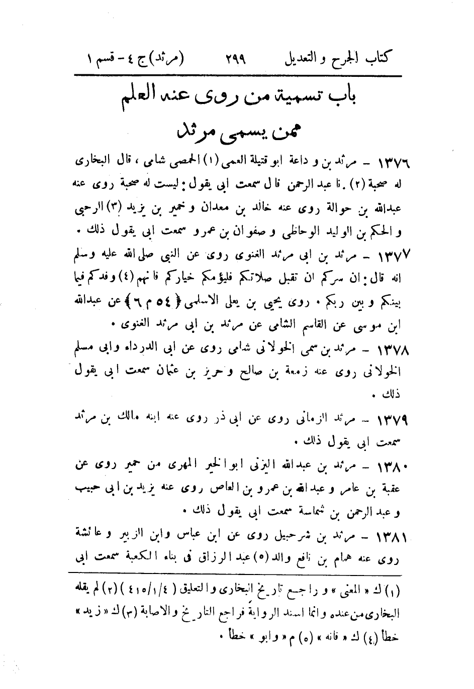 - باب تسمية من رُوي عنه العلم، مِمَّن يُسَمَّى مرثد.