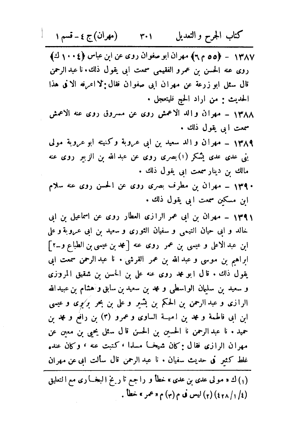 1391- مهران بن أَبي عُمر الرازي العطار.