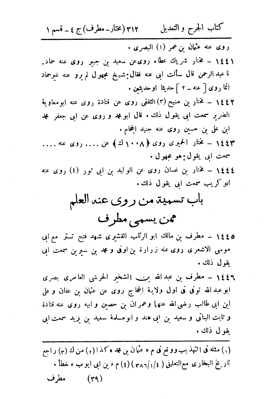 - باب تسمية من رُوي عنه العلم، ممن يسمى مُطَرِّف.