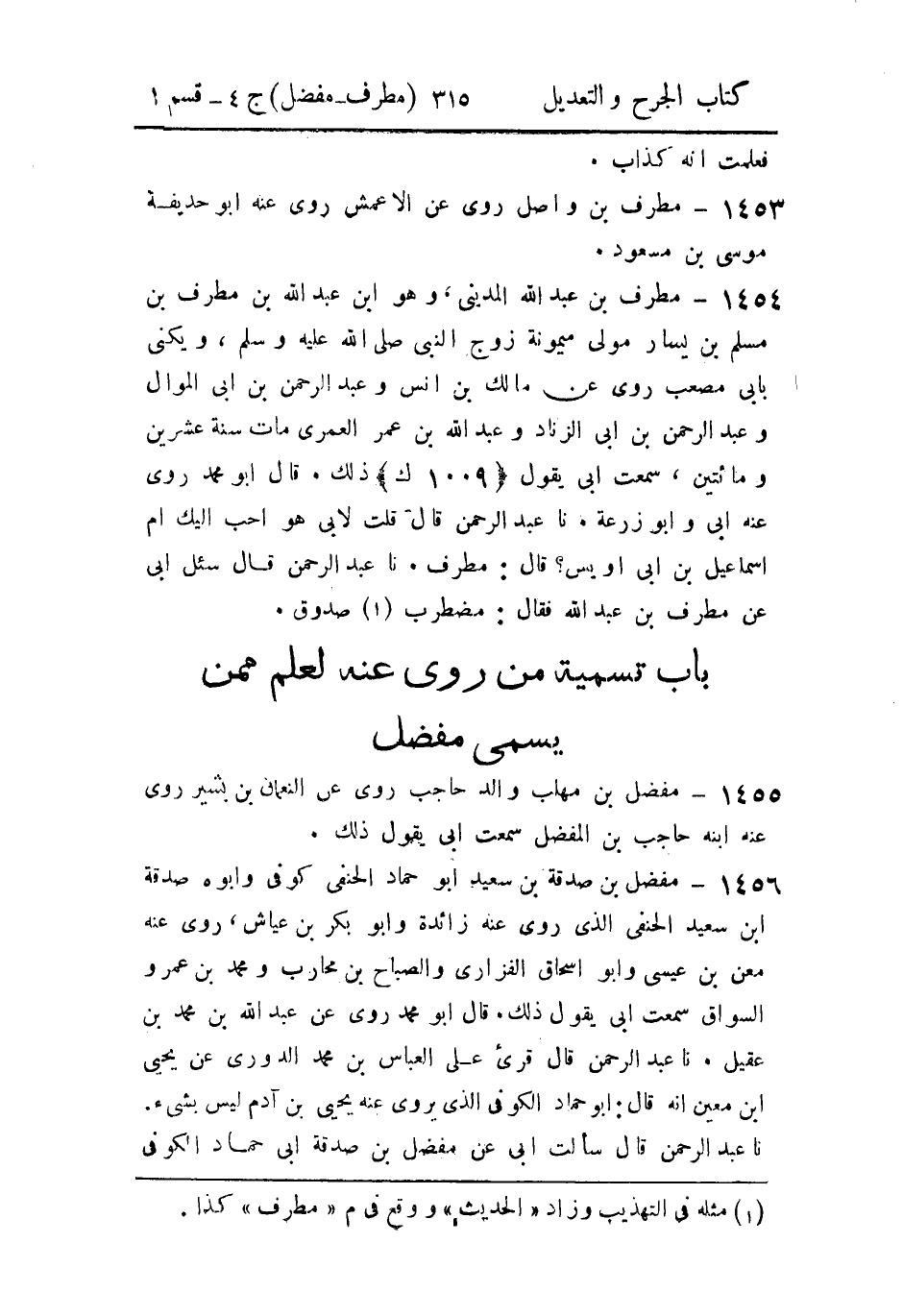 - باب تسمية من رَوَى عَنه العلم، مِمَّن يُسَمَّى مفضل.