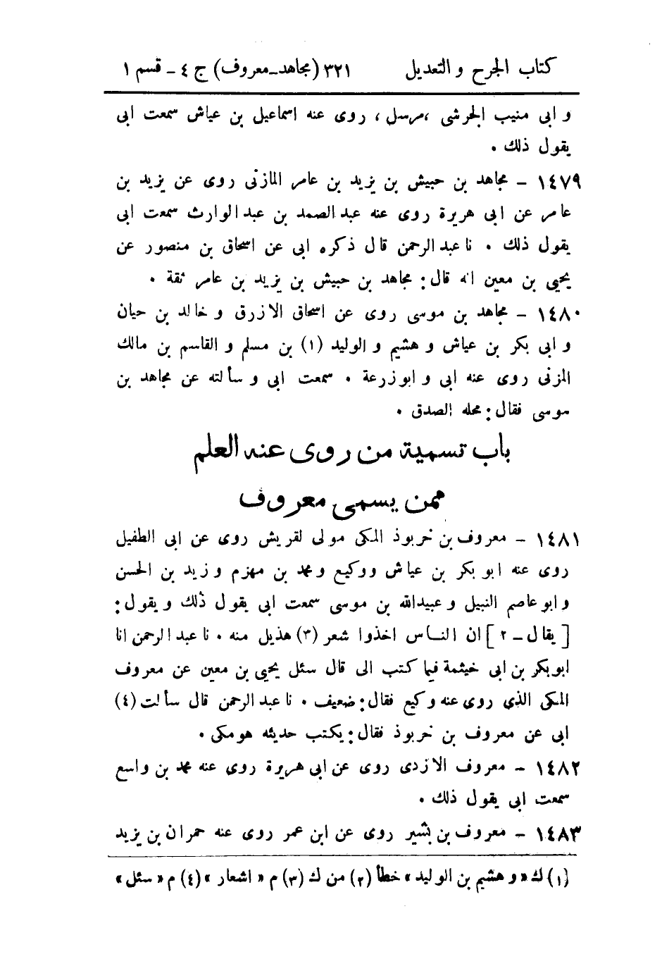 - باب تسمية من رُوي عنه العلم، مِمَّن يُسَمَّى معروف.