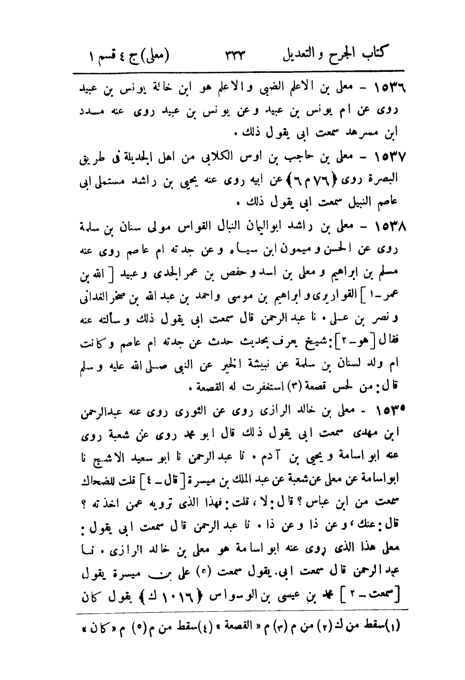 1536- معلى بن الأعلم الضَّبّي، والأعلم هو ابن خالة يُونُس بن عُبيد.