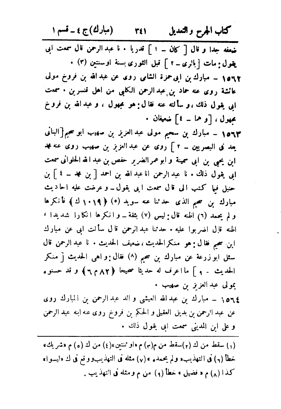 1564- مبارك بن عَبد الله العيشي والد عَبد الرَّحمن بن المبارك.