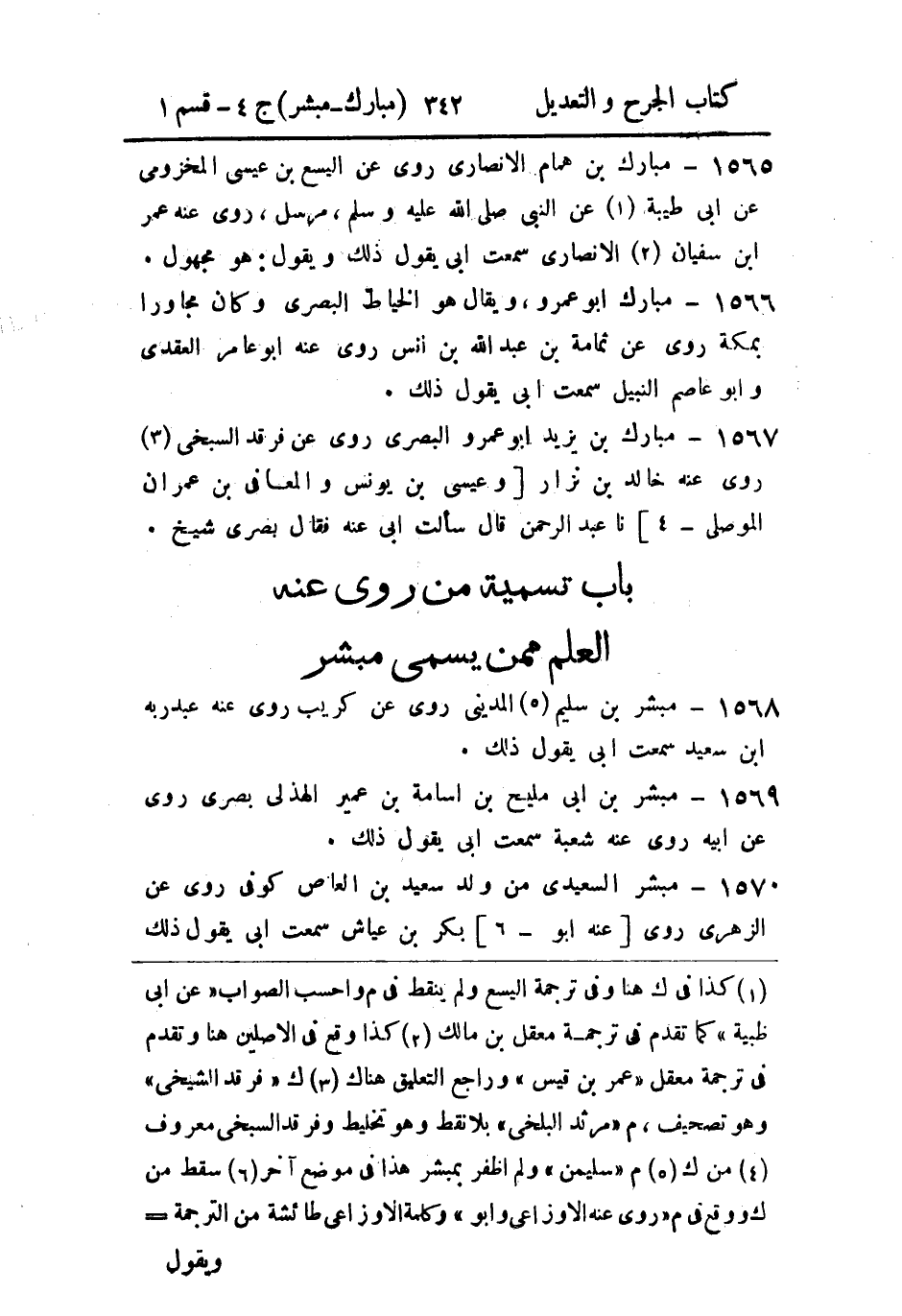- باب تسمية من رُوي عنه العلم، مِمَّن يُسَمَّى مُبَشر.