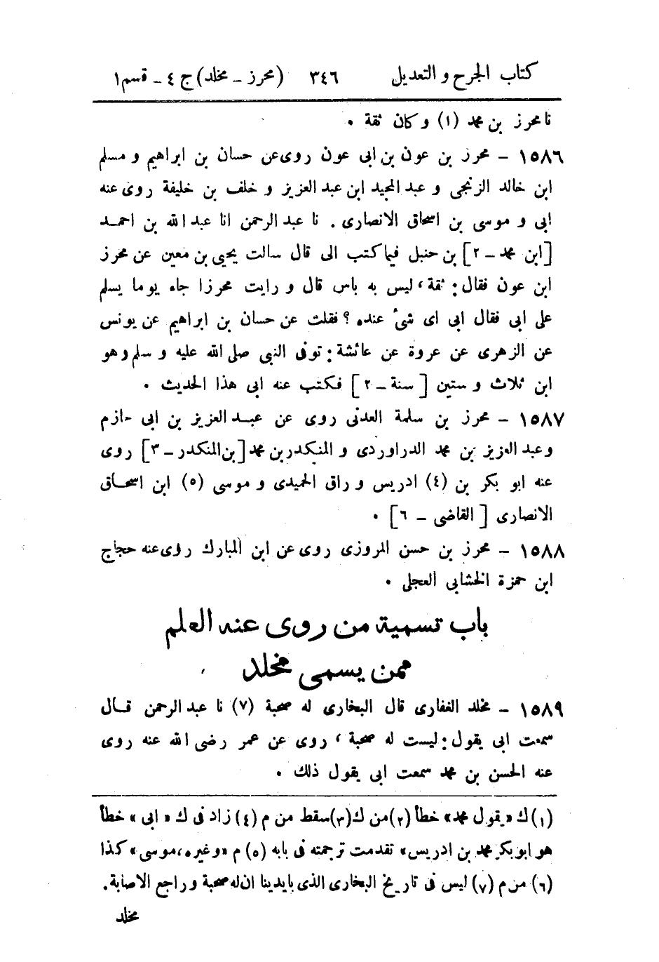 - باب تسمية من رُوي عنه العلم، مِمَّن يُسَمَّى مخلد.